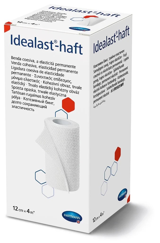 Krátkotažné obinadlo Idealast-haft je vyrobeno z 80 % z bavlny s příměsí polyamidových a elastanových vláken. Otevřená struktura tkaniny zajišťuje vysokou prodyšnost a pružnost obinadla i při opakovaném použití.