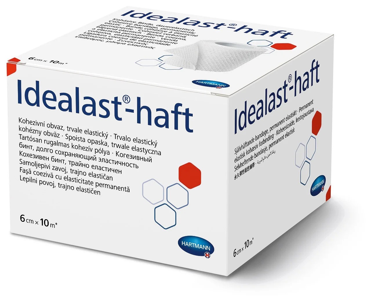 Krátkotažné obinadlo Idealast-haft je vyrobeno z 80 % z bavlny s příměsí polyamidových a elastanových vláken. Otevřená struktura tkaniny zajišťuje vysokou prodyšnost a pružnost obinadla i při opakovaném použití.
