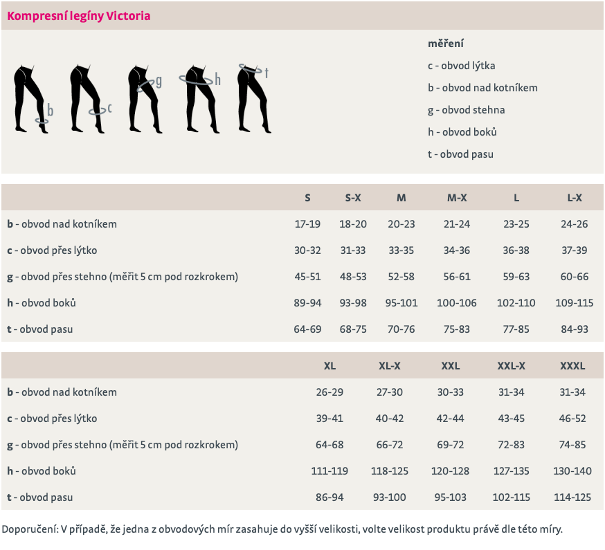 Victoria – speciální kompresní formující a zeštíhlující legíny z SHAPEWEAR kolekce MAXIS. Příznivě ovlivňují cirkulaci v žilním a lymfatickém systému. Jsou vhodné při prevenci celulitidy a lipedému a výrazně prodlužují dobu účinku lymfodrenáže. Slouží také jako podpora ochablého pánevního svalstva po porodu. Produkt je určen ke každodennímu nošení, sportu, k fitness aktivitám, regeneraci i relaxaci.