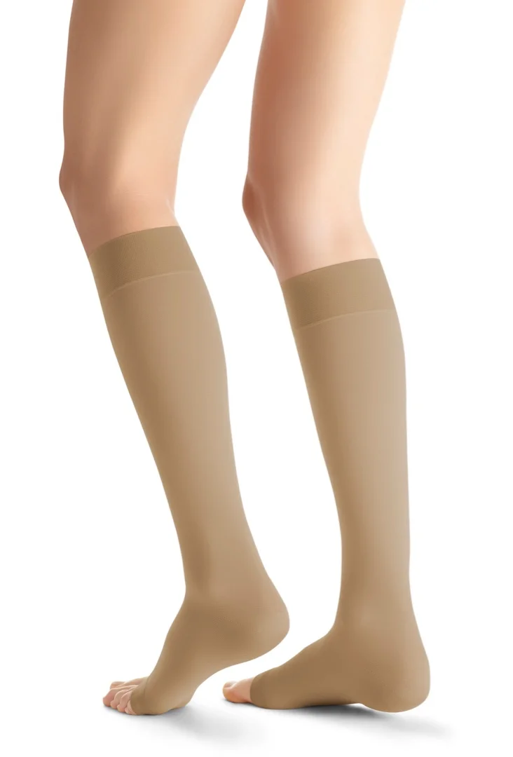 Neprůhledné kompresní lýtkové punčochy JOBST Opaque bez špice pro osoby se žilními problémy.