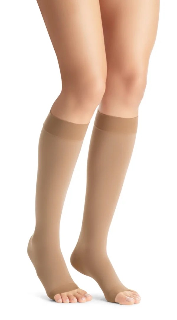Neprůhledné kompresní lýtkové punčochy JOBST Opaque bez špice pro osoby se žilními problémy.