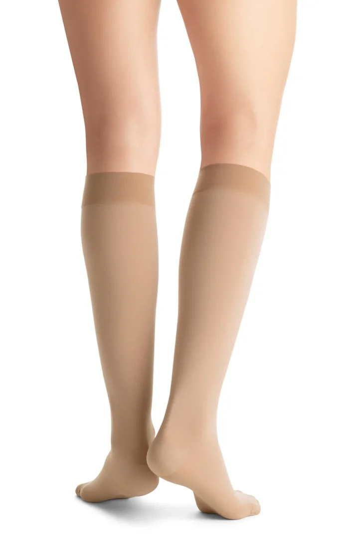 Neprůhledné kompresní lýtkové punčochy JOBST Opaque se špicí pro osoby se žilními problémy.