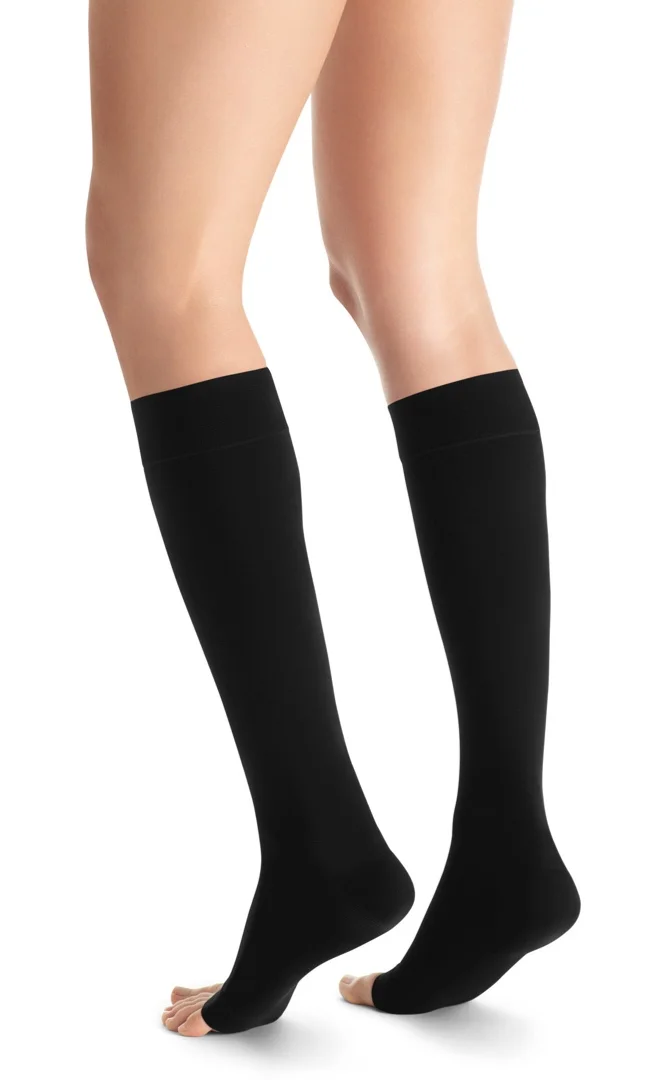 Neprůhledné kompresní lýtkové punčochy JOBST Opaque bez špice pro osoby se žilními problémy.