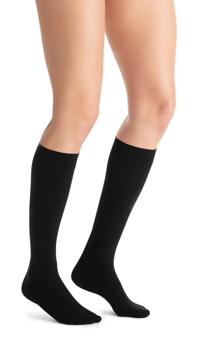 Neprůhledné kompresní lýtkové punčochy JOBST Opaque se špicí pro osoby se žilními problémy.