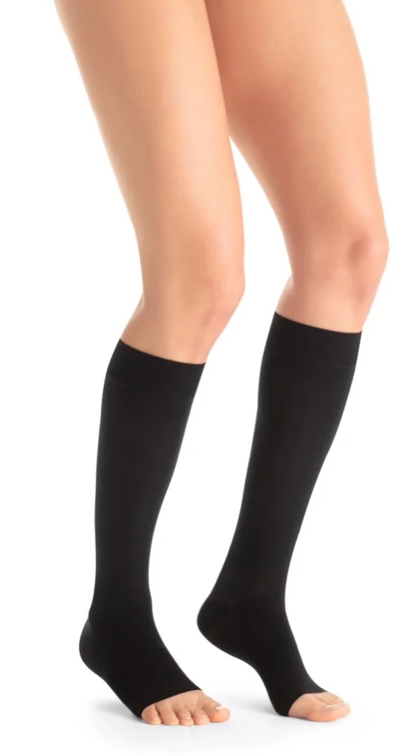 Průhledné prodyšné kompresní lýtkové punčochy JOBST Ultra Sheer bez špice pro ženy se žilními problémy.