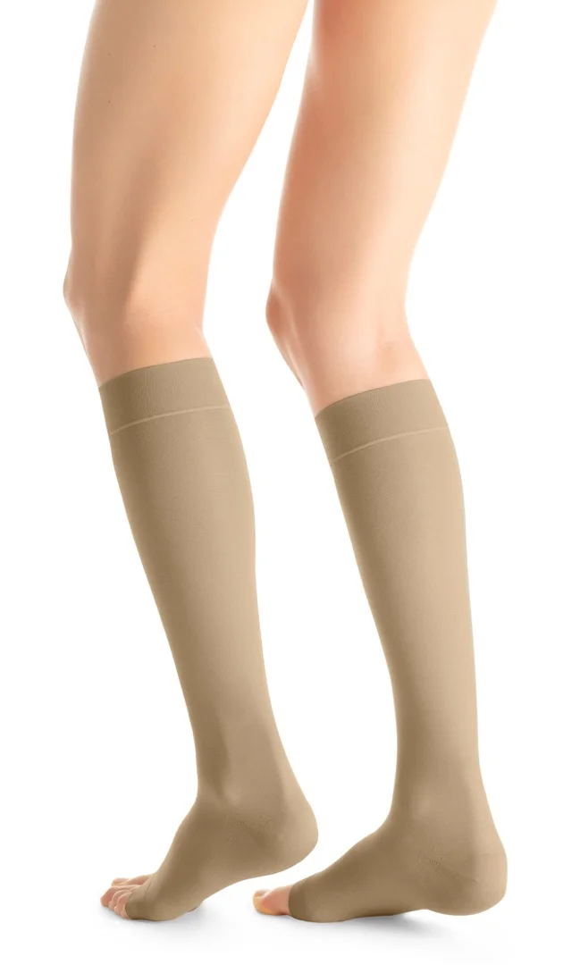 Průhledné prodyšné kompresní lýtkové punčochy JOBST Ultra Sheer bez špice pro ženy se žilními problémy.