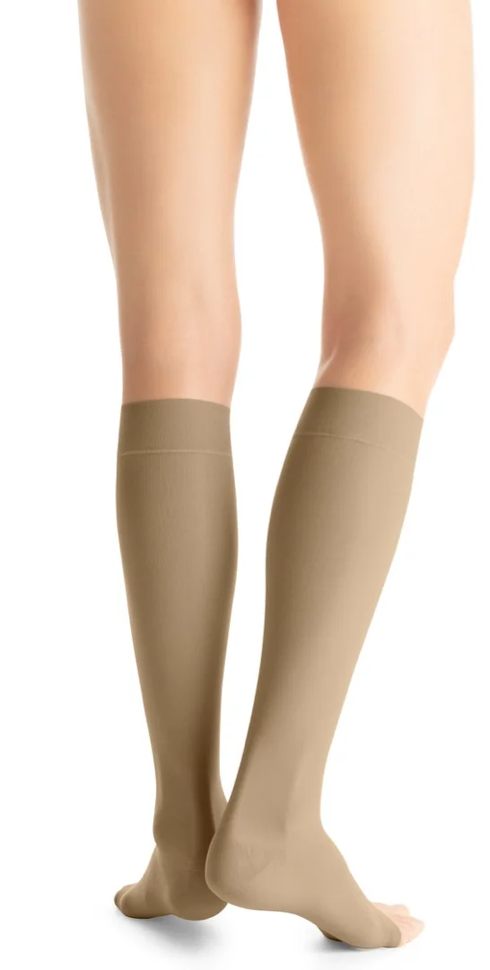 Průhledné prodyšné kompresní lýtkové punčochy JOBST Ultra Sheer bez špice pro ženy se žilními problémy.