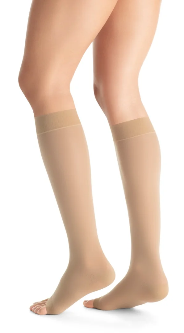 Průhledné prodyšné kompresní lýtkové punčochy JOBST Ultra Sheer bez špice pro ženy se žilními problémy.