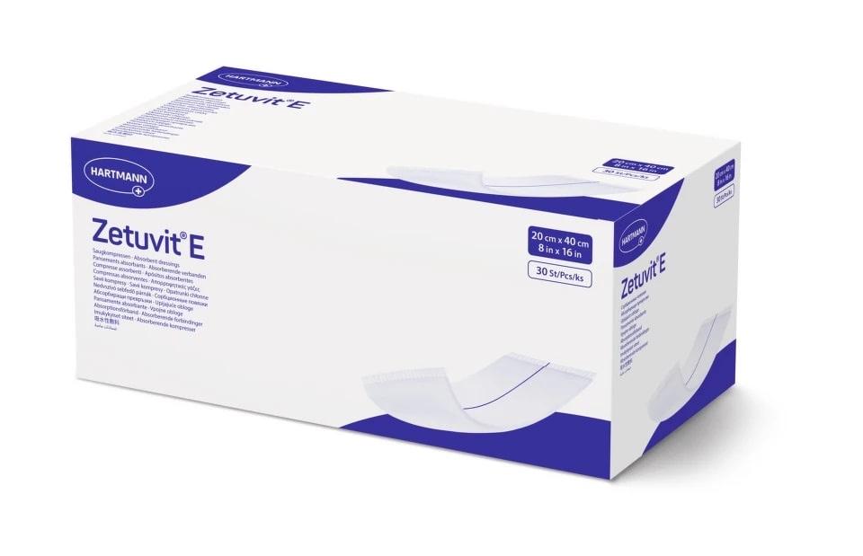 Kompres Zetuvit E je speciálně určen pro ošetření silně secernujících ran. Poskytuje vysokou savost a zamezuje přilepení k ráně. Vnitřní strana zabezpečuje odvod sekretu od savého jádra.
