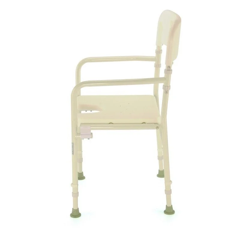Skládací křeslo do sprchy šetří místo, zároveň ale nabízí dostatečnou oporu a pohodlí. Křeslo má navíc výřez pro bezpečnější a pohodlnější intimní hygienu. Je vybaveno skládacím rámem pro snadnější uskladnění nebo převoz. Doporučujeme doplnit protiskluzovou podložkou.