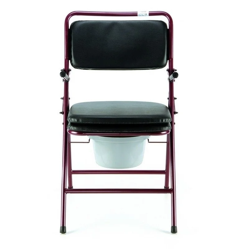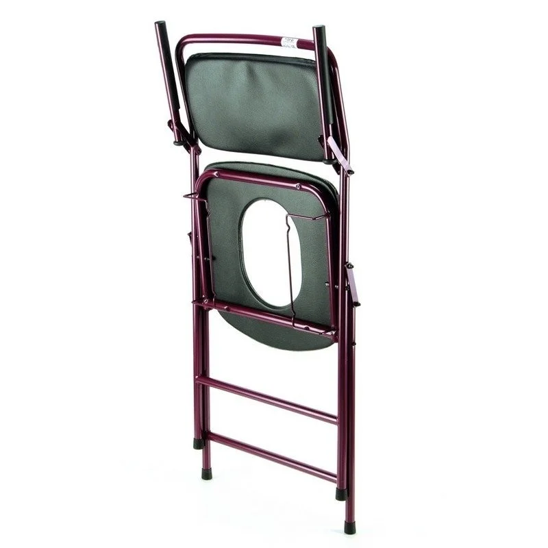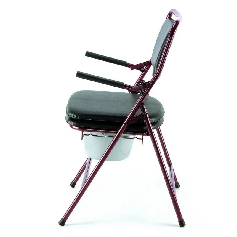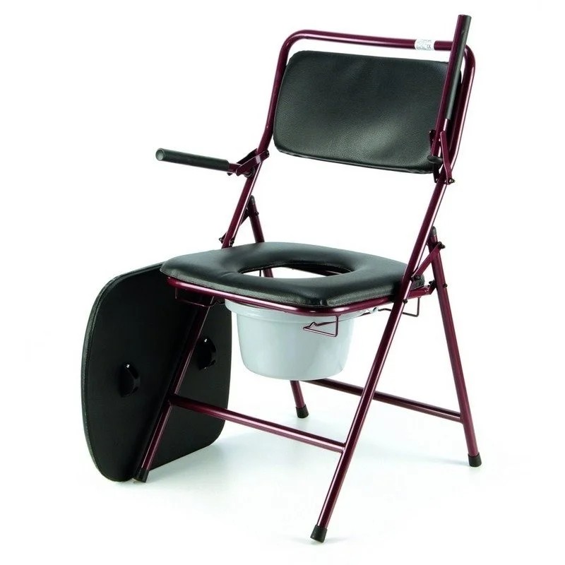 Přenosné skládací toaletní křeslo s čalouněnou zádovou opěrkou, sedákem a krytem sedáku se zvedacími loketními opěrkami. Je dodáváno s odnímatelnou toaletní mísou a víkem, které lze snadno vyčistit. Pro snadné skladování může být složeno.