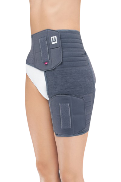 Ortéza medi orthocox působí kompresivně na kyčelní kloub a podporuje jeho rotaci.