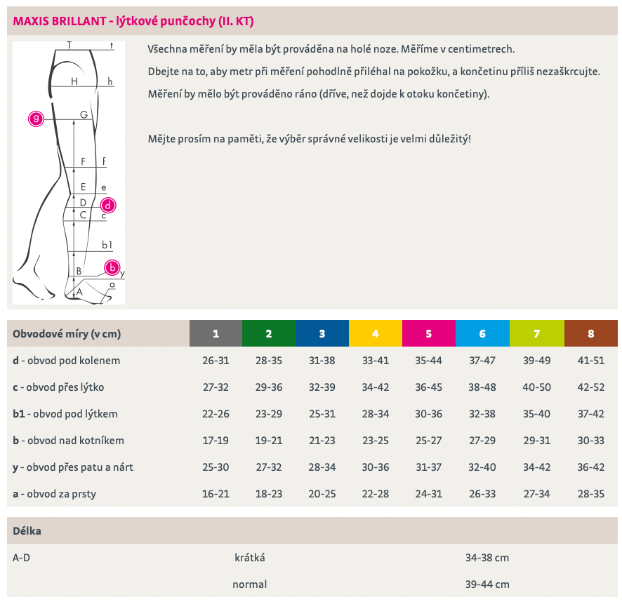 Délka punčochy (A-D)