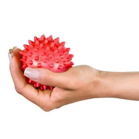 Masážní míček s měkkými hroty - ježek. Lehké provedení snadné pro použití. Míček je ideální pro masáže, reflexní terapii, relaxační cvičení, cvičení úchopové schopnosti a pohybu prstů. Koulení míčku v dlaních může mít vliv na odbourávání stresu.