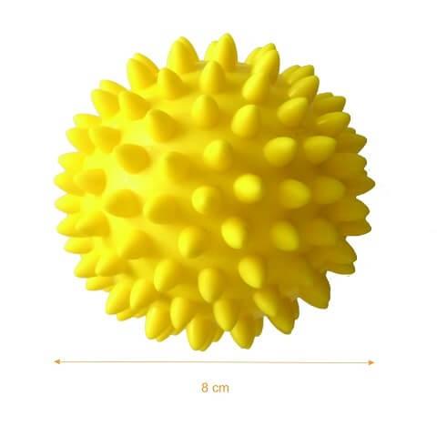 Masážní míček s měkkými hroty - ježek. Lehké provedení snadné pro použití. Míček je ideální pro masáže, reflexní terapii, relaxační cvičení, cvičení úchopové schopnosti a pohybu prstů. Koulení míčku v dlaních může mít vliv na odbourávání stresu.
