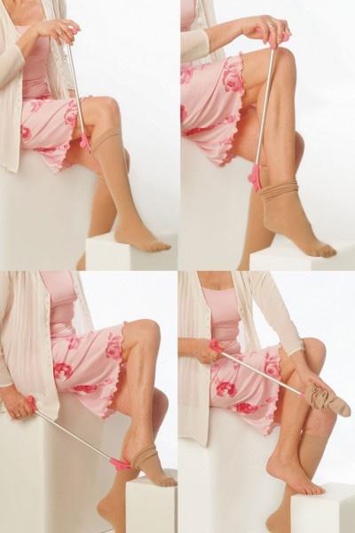 Díky pomůcce medi Butler Off lze kompresivní punčochy lehce stahovat, aniž by bylo zapotřebí velké síly. Pacient si sám určuje, jak rychle si chce punčochy stahovat.