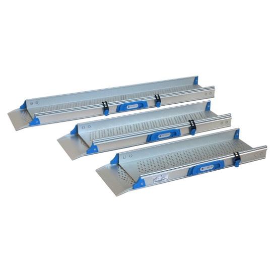 Dvoudílné teleskopické nájezdové rampy v celkové délce 203 cm.