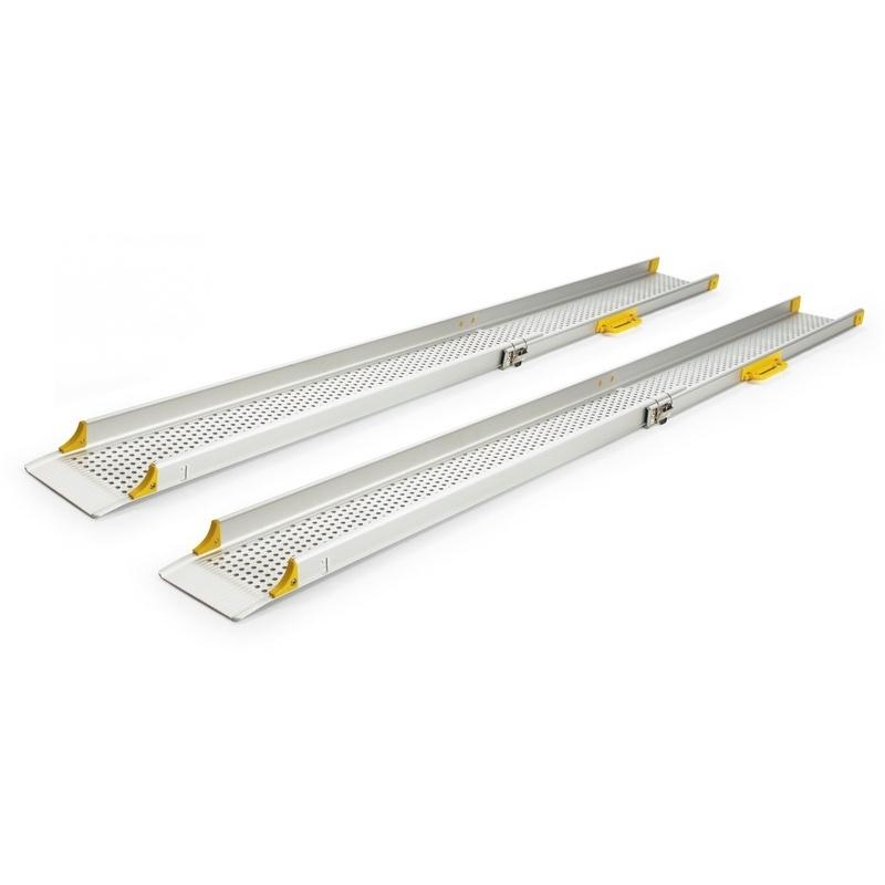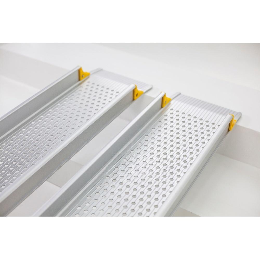 Dvoudílná nájezdová rampa skládající se ze dvou duralových konstrukcí.