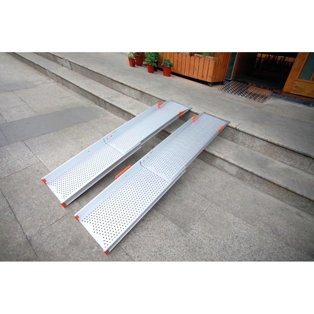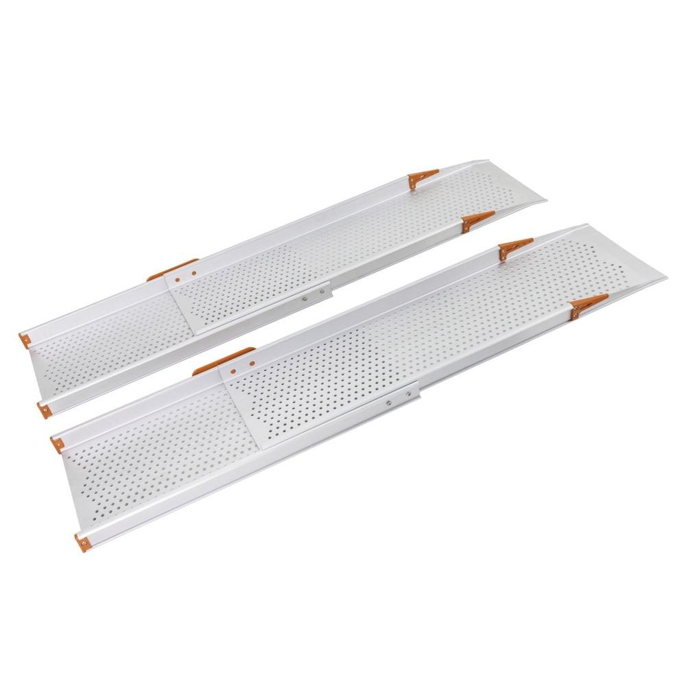 Dvoudílná nájezdová rampa skládající se ze dvou duralových konstrukcí.