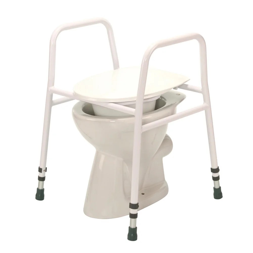 Nástavec na WC s madly a poklopem slouží pro zvýšení toalety k usnadnění dosedání i vstávání. Přenosný nástavec doporučujeme použít tam, kde je obtížné přivrtat klasické madlo do zdi nebo při častějším přesunu z místa na místo.