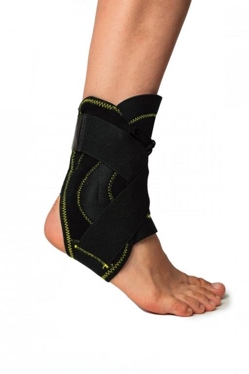 Ortéza má boční výztuhy a profilované výztuhy, které zajišťují správnou stabilizaci a přizpůsobení tvaru kotníku.