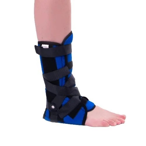 Ortéza má po stranách plastové výztuhy s upínacími popruhy ke zlepšení stability hlezenního kloubu. Je vyrobena z elastického sendvičového materiálu (neopren, froté).v