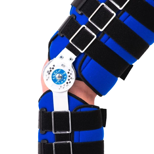 - dlouhá kloubová ortéza s nastavitelným rozsahem flexe od 0° - 120° a extenze od 0° - 80°