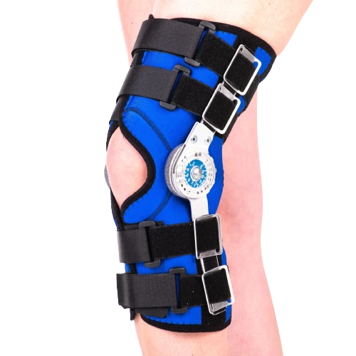 - krátká kloubová ortéza s nastavitelným rozsahem flexe a extenze od 0° - 120°