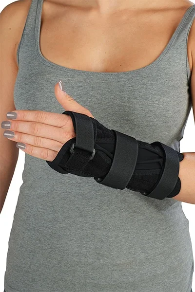 Rigidní bandáž zápěstí s tvarovatelnou duralovou dlahou, která zabezpečuje fixaci společně se třemi stahovacími pásky. Bandáž lze zcela rozložit, pro snadnější nasazení. Použité materiály jsou prodyšné.