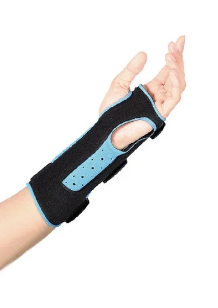 Ortéza na zápěstí s univerzálním střihem pro levou a pravou ruku obsahuje hliníková profilovaná vložka a rozsáhlý systém upevňovacích popruhů, které zajišťují úplnou tuhost zápěstí a zajišťují volný pohyb prstů. Je vyrobena z prodyšného materiálu, zahřívá zápěstí a zlepšuje krevní oběh.