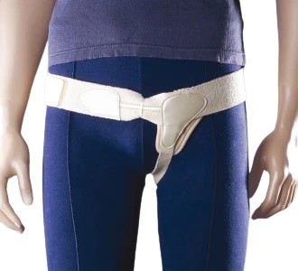 Pravé provedení jednostranného kylního tříselného pásu. Tříselný kylní pás má pelotu velkého profilu. Doporučuje se používat v případě tříselné kýly.
