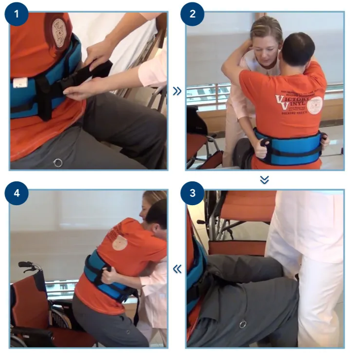 Ergonomie pásu usnadňuje manipulaci s klientem a zabraňuje tak přetížení kloubů a zad, optimalizuje přenos sil a kontrolu nad přesunem, zvyšuje pohodlí a důvěru klienta.