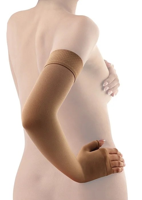 Pažní návlek druhé kompresní třídy (23 - 32 mmHg) s rukavicí. Návlek je zakončen lemem se silikonovými nopky.