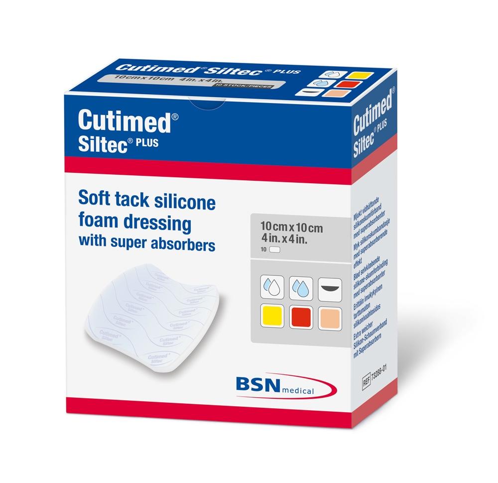 Cutimed® Siltec® PLUS je silikonem potažené pěnové krytí. Cutimed® Siltec® PLUS je sterilní, absorpční krytí z polyuretanové pěny pro atraumatické převazy, které obsahuje superabsorpční proužky, které absorbují a uzamykají exsudát.