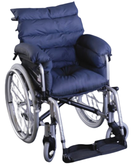 Při kombinaci 3 podložek (polštář, loketní opěrky a zádový polštář) vzknikne kompaktní velká podložka pro maximální pohodlí na invalidním vozíku.
