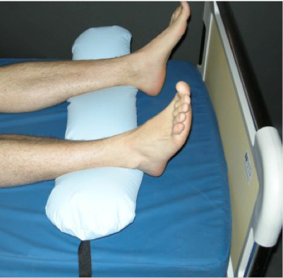 Tento polštář poskytuje úlevu patám, přičemž je lůžku je připevněn pomocí popruhů.