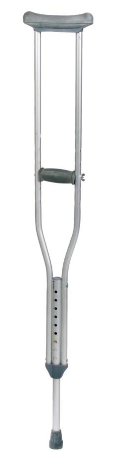 Duralové, výškově nastavitelné podpažní berle s podpažní a dlaňovou vložkou z hřejivé polyuretanové pěny.