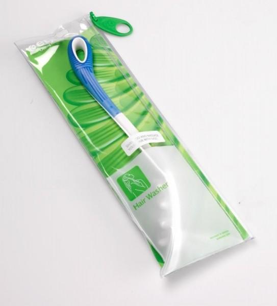 Speciální pomůcka (kartáč) k mytí vlasů s ergonomickou rukojetí.
