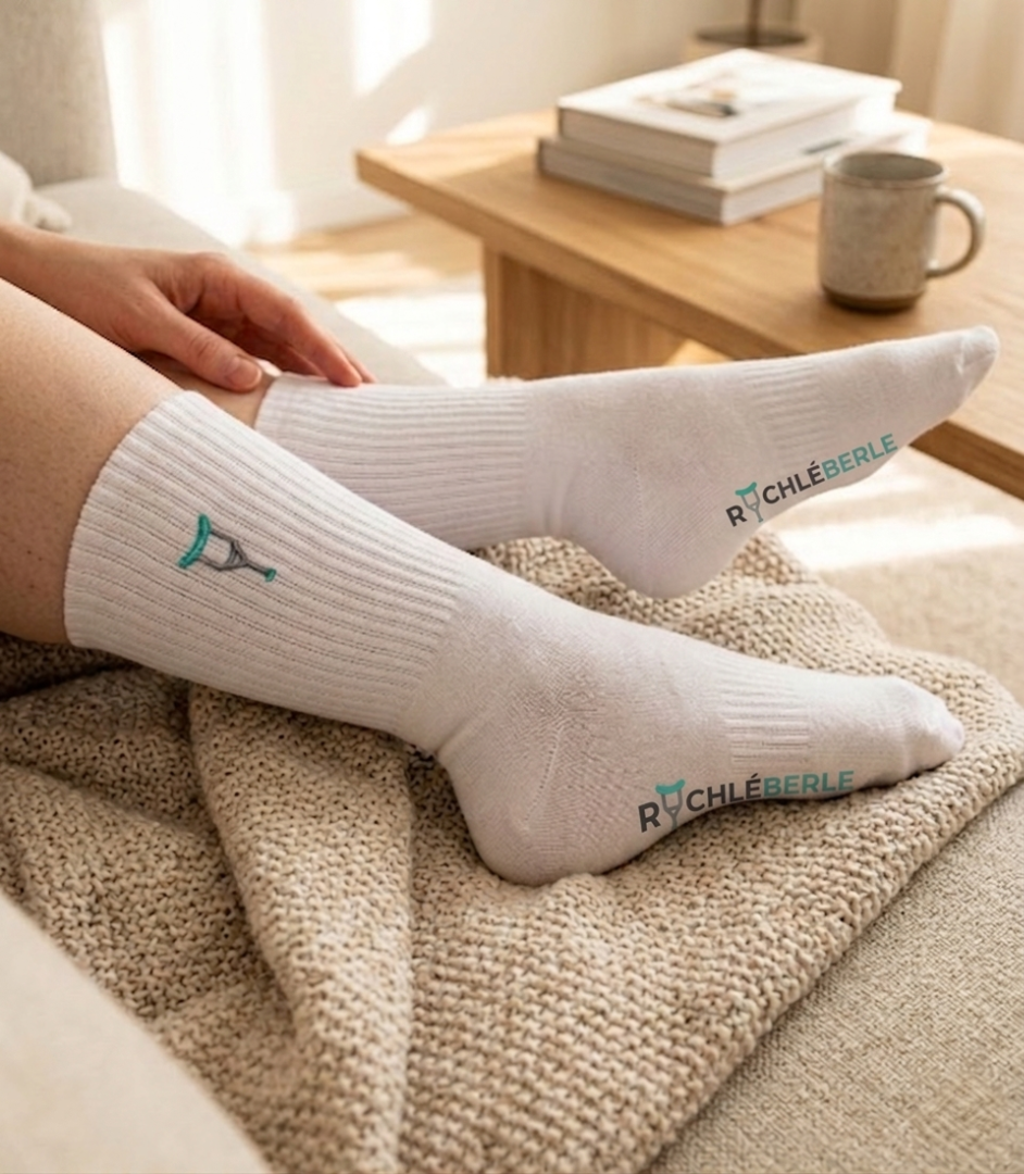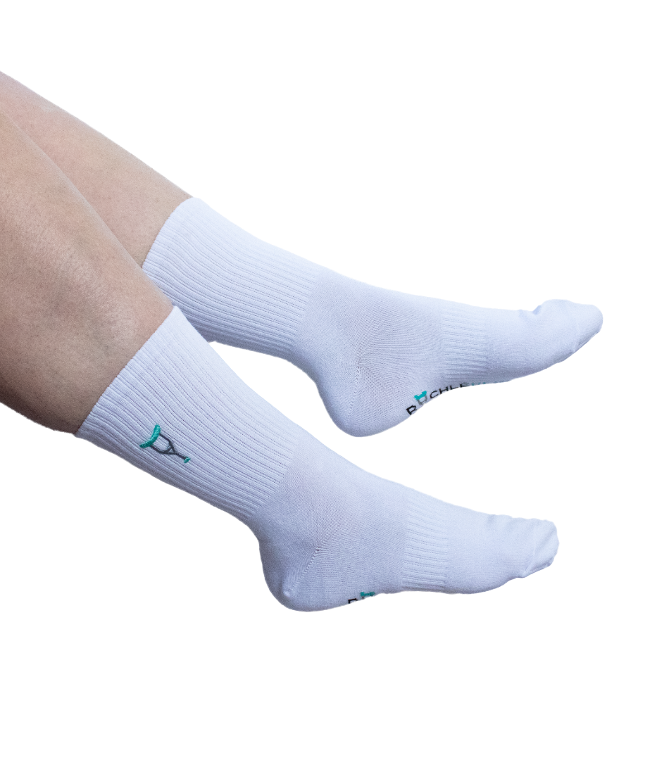 Bílé bavlněné ponožky rychlé berle s žebrováním v lýtkové části.