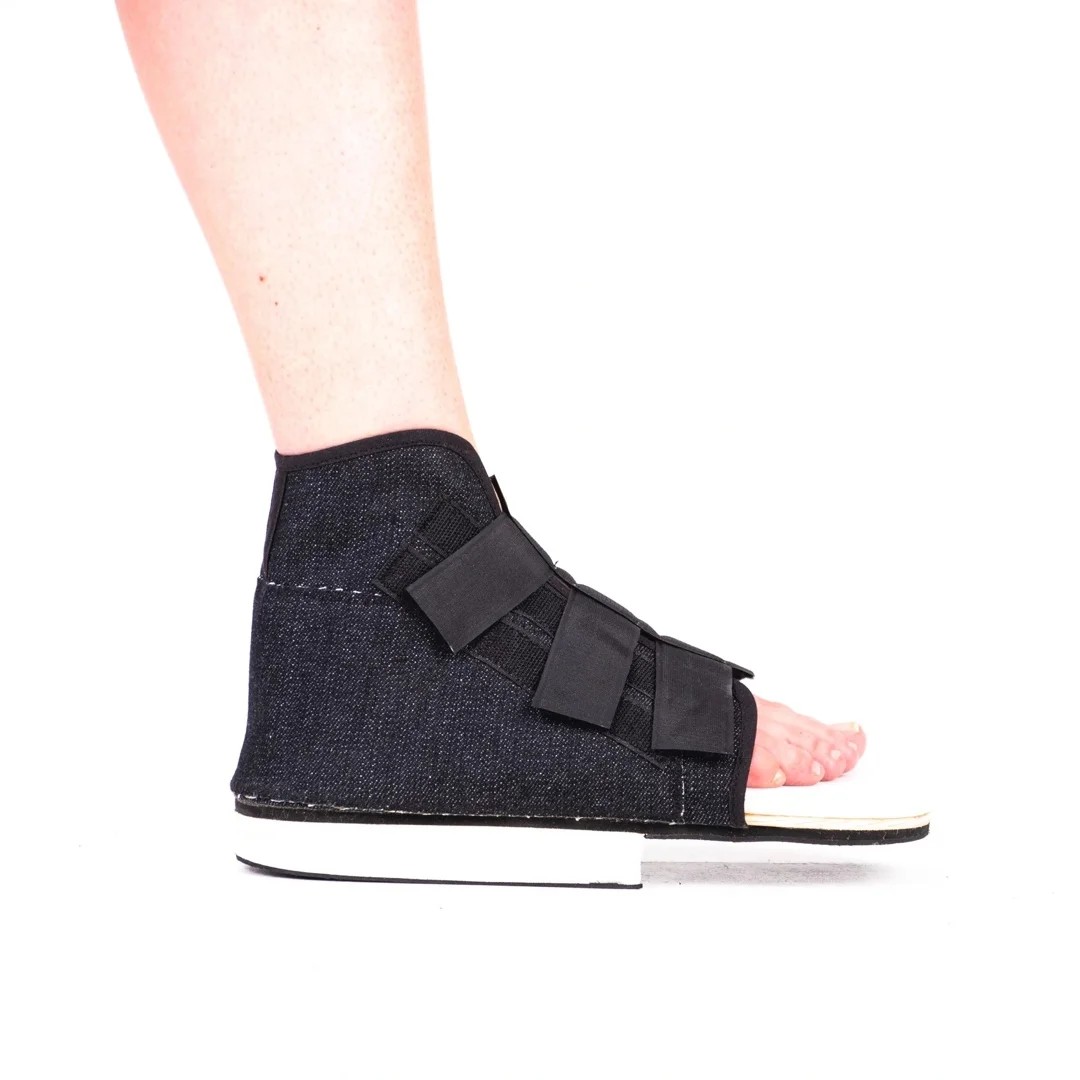 Pooperační ortéza hlezna podrážkou podpírá zadní polovinu chodidla. Podešev je pevná, vrstvená (neprohýbá se) a přední polovina chodidla zůstává odlehčená. Upínací část ortézy je oddělitelná s dostatečně dlouhými suchými zipy kvůli obvazům chránící pooperační ránu. Svršek je z příjemného textilního materiálu.
