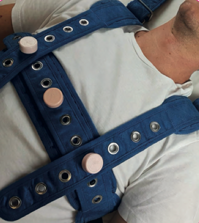 Tento popruh účinně znehybňuje pacientův hrudník.