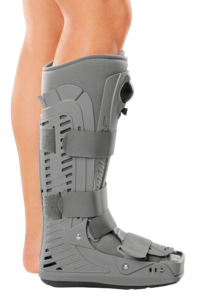 Vysoká pooperační a rehabilitační nafukovací ortéza hlezna s protiskluzovou podrážkou a zapínáním na suchý zip.