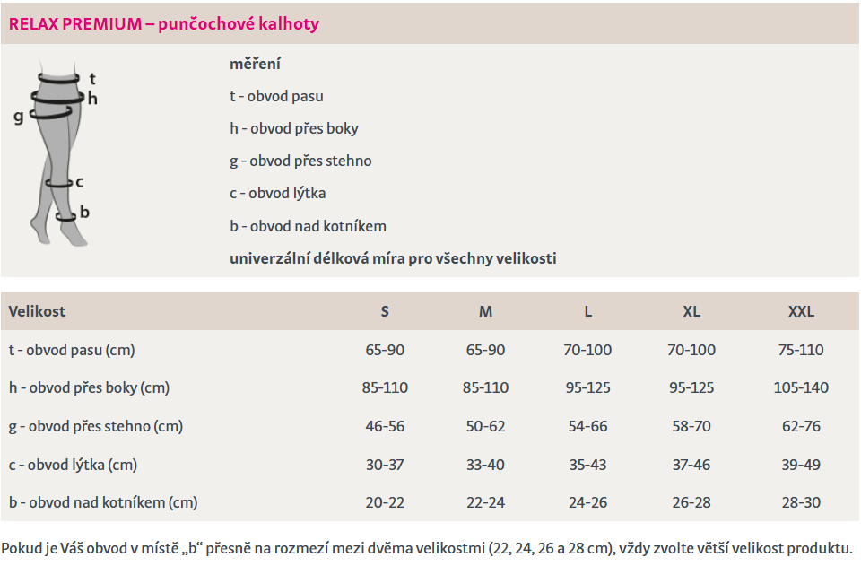 Punčochy RELAX PREMIUM jsou nedílnou součástí prevence žilních a lymfatických onemocnění a kompresivní léčby. Mají odzkoušený gradient sestupu tlaku od kotníku směrem vzhůru. Vyvíjený tlak výrazně napomáhá cirkulaci krve v nohou. Punčochy RELAX PREMIUM pomáhají předcházet vzniku cestovní trombózy, jsou vhodné při dlouhodobém sezení a stání, po lymfodrenáži anebo po kosmetickém zákroku na rozšířených kožních žilkách (pavoučí žíly – metličky).