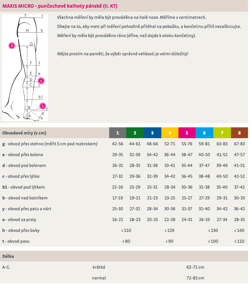 Délka punčochy (A-G)