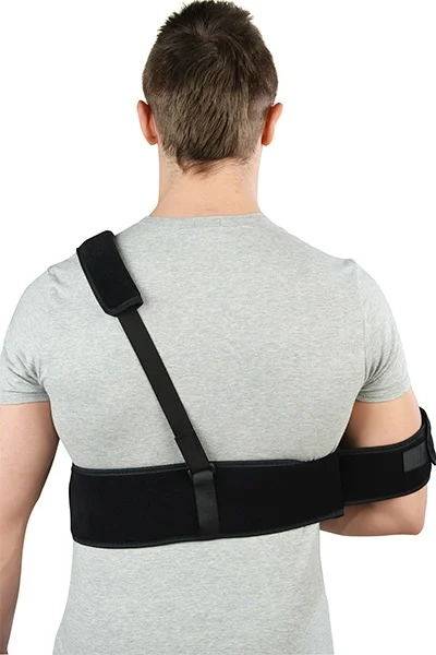 Ramenní bandáž je určena k fixaci ramene i lokte. Popruh tažený přes rameno zamezuje zatěžování krční páteře. Velkou výhodou je vzdušnost, snadný přístup k horní končetině a snadná aplikace.