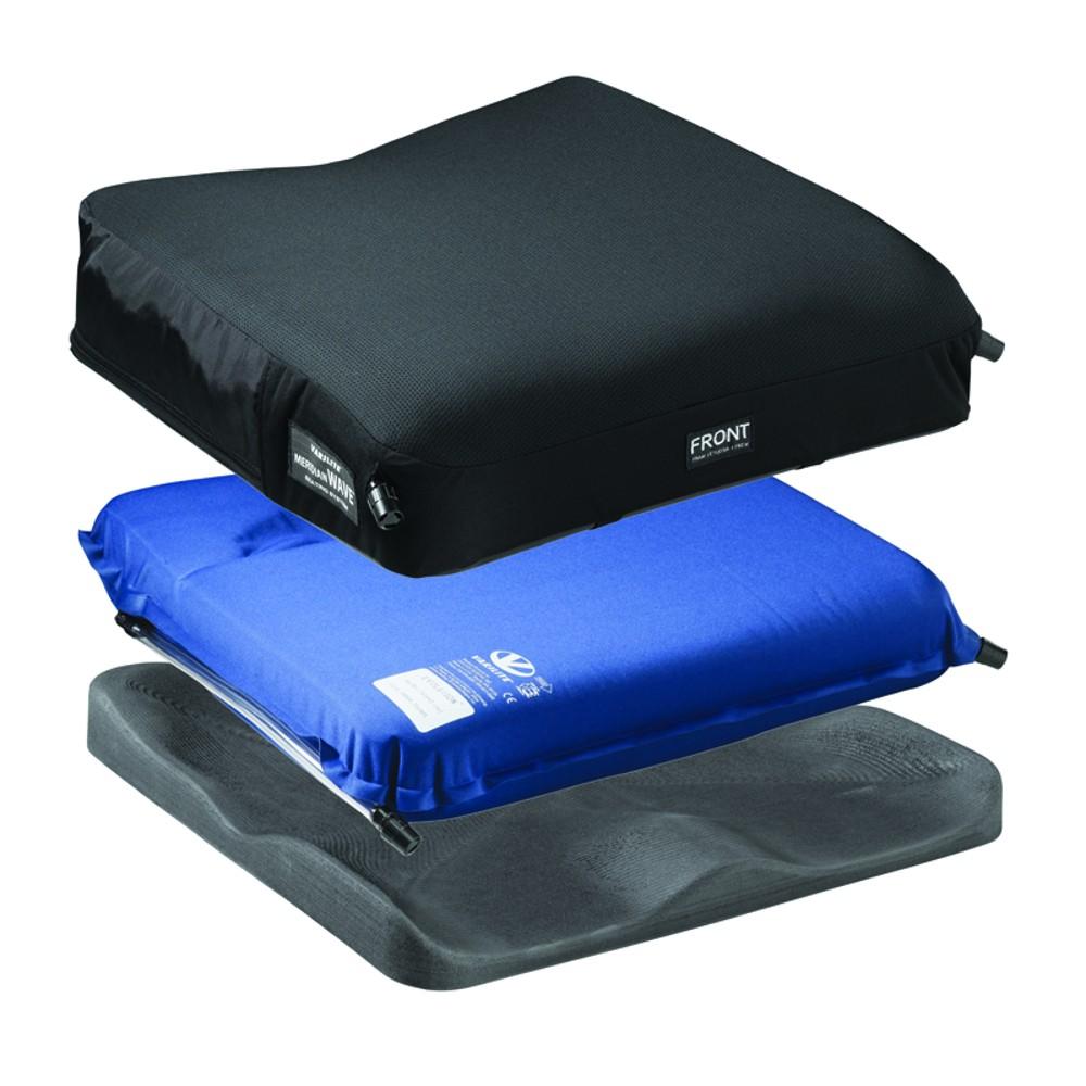 Antidekubitní sedák Varilite Meridian podložený konturovanou deskou z tvrdé pěny v provedení LPB.