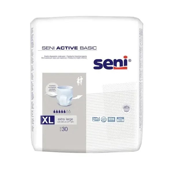 Seni Active Basic Extra Large inkontinenční plenkové kalhotky pro osoby se středním stupněm inkontinence. Kalhotky nabízí komfort a diskrétní provedení.