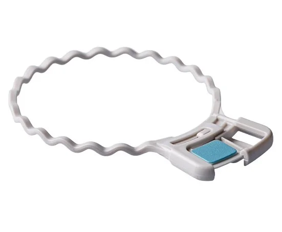 Sáček je k podložce bezpečně připevněn pomocí mechanického kroužku se zámečkem. Slyšitelné kliknutí potvrzuje bezpečné uzamčení sáčku k podložce. Před uzamčením zámečku na kroužku lze sáček natočit do požadované pozice bez nutnosti odpojení sáčku od podložky. Zámeček se uzavírá i otevírá bez tlaku na břišní stěnu.