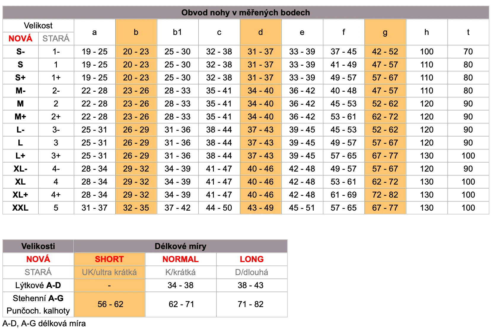 Délka punčochy (A-G)