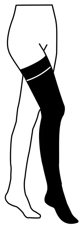 Stehenní stahovací punčochy druhé kompresní třídy (23 - 32 mmHg) se zavřenou špicí, zakončené krajkou se silikonovými proužky.
